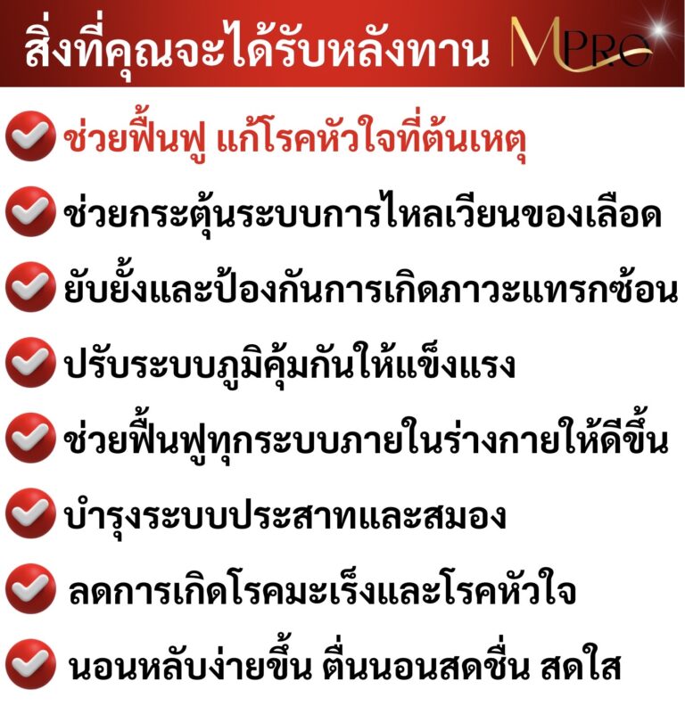 แต่เราโชคดีที่เพื่อนของลูกชายแนะนำให้ทานสมุนไพรสกัดจากธรรมชาติที่ชื่อ MPro เพราะคุณแม่เขาก็มีอาการเหมือนเรา แถมหนักกว่าเราอีก ตอนเป็นถึงขั้นหัวใจเต้นผิดจังหวะ และต้องไปกายภาพบำบัดด้วยเครื่องสัปดาห์ละ 2-3 ครั้ง รักษากับหมอดังๆมาเยอะมาก แต่ก็ไม่หาย เขายังทานแล้วหายเป็นปกติ เราเลยสั่งชุดโปร 2 แถม 1 มาลองทาน