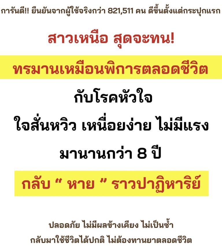 สวัสดีคะ ชื่อ สาว น่ะคะ อายุ 48 ปี เป็นคนแพร่คะ วันนี้เราอยากจะมาแชร์ประสบการณ์ของตัวเอง เล่าย้อนกลับไปเมื่อ 8 ปีที่แล้วคะ เราเคยป่วยเป็นโรคหัวใจ แต่ตอนนี้หายเป็นปกติแล้ว เรามีอาการ เจ็บหน้าอก แน่นหน้าอก หายใจไม่ออก อ่อนเพลีย ไม่มีแรง เหนื่อยง่าย ใจสั่น ใจหวิว เหงื่อออกร่วมด้วย วูบ หมดสติ ซื้อยามาทานก็ไม่ดีขึ้น